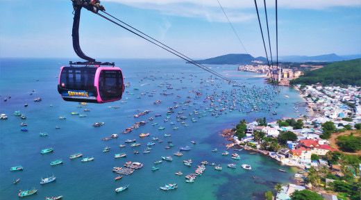 마지막으로 소개할 여행지는 혼똠 섬입니다. 혼똠 섬은 푸꾸옥에서 케이블카를 타고 갈 수 있는 작은 섬으로, 천혜의 자연경관과 다양한 액티비티를 즐길 수 있는 곳이에요. 혼똠 섬은 특별히 세계 최장의 케이블카 노선을 자랑하며, 그 길이가 무려 7.9km에 달합니다.