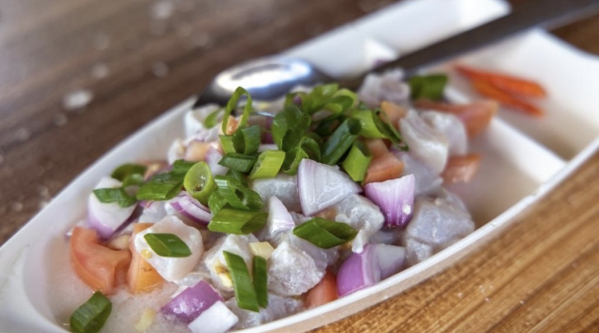 신선한 생선을 식초와 라임 주스로 마리네이드한 요리.