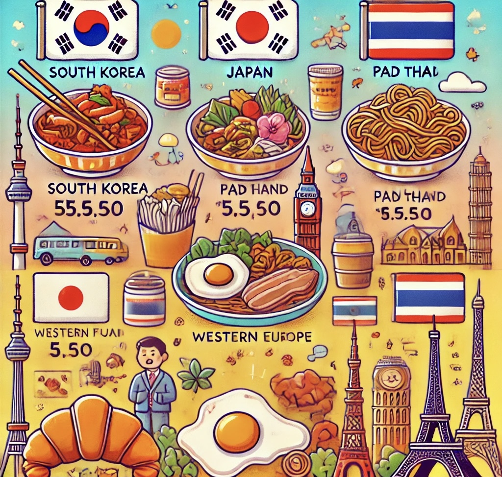 해외여행을 계획하실 때 중요한 고려사항 중 하나는 바로 현지 음식 가격입니다. 여행지에서의 식사 비용은 전체 여행 경비에 큰 영향을 미치기 때문에, 각 나라의 음식물가를 미리 파악해 두면 예산 계획에 큰 도움이 됩니다. 이번 글에서는 한국, 일본, 태국, 유럽(프랑스/독일 중심)을 기준으로 음식 가격을 비교해 보겠습니다.